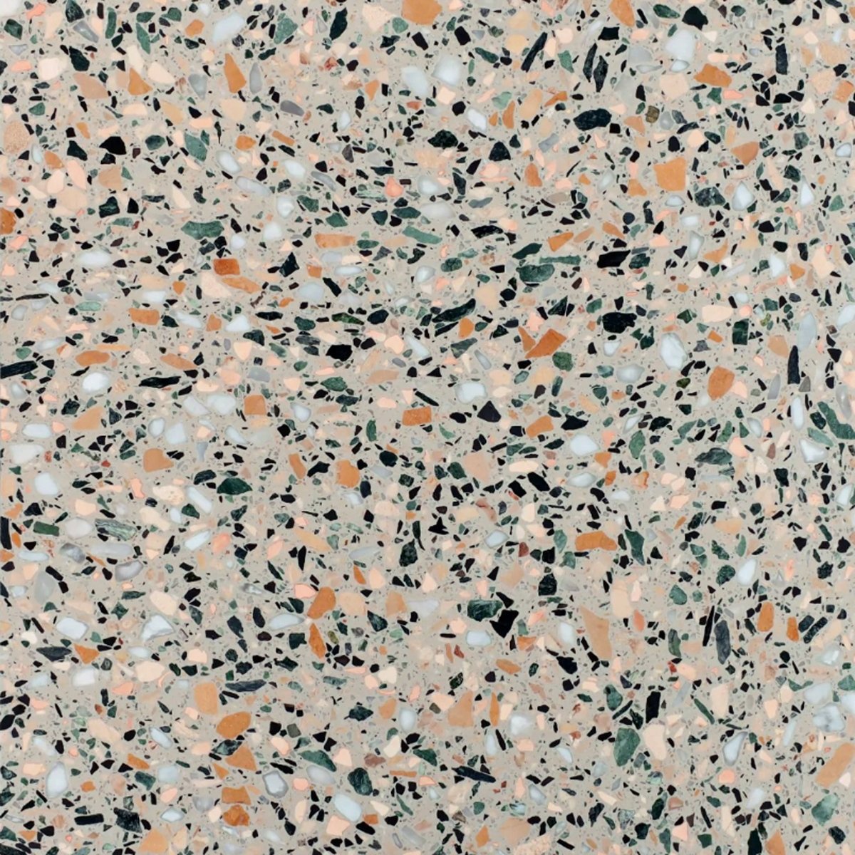 Agra Terrazzo Honed tiles deliver understated luxury through their carefully curated composition of natural stone, marble chips, and glass fragments set in a refined cement base. The honed finish creates a velvety, light-diffusing surface that exudes quiet sophistication without gloss or shine. Measuring 24"x24" with a half-inch profile, these tiles seamlessly integrate into discerning interiors seeking both visual interest and tactile refinement. The subtle color variations and organic patterning ensure no two tiles are identical, adding an element of exclusivity to residential and commercial spaces. An exceptional choice for those who appreciate understated elegance and enduring quality.