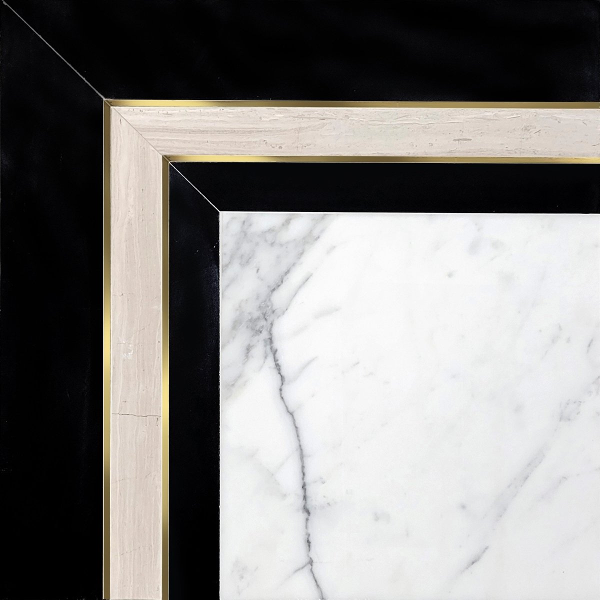 Materials: Nero Marquina Polished, Athens White Honed, and Brushed Brass.