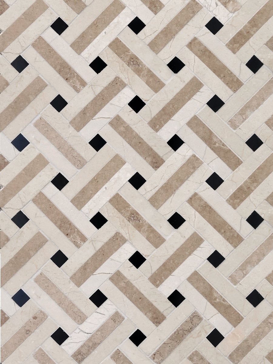 Materials: Crema Marfil, Lt Emperador and Nero, All Polished. Available in Honed Finish.