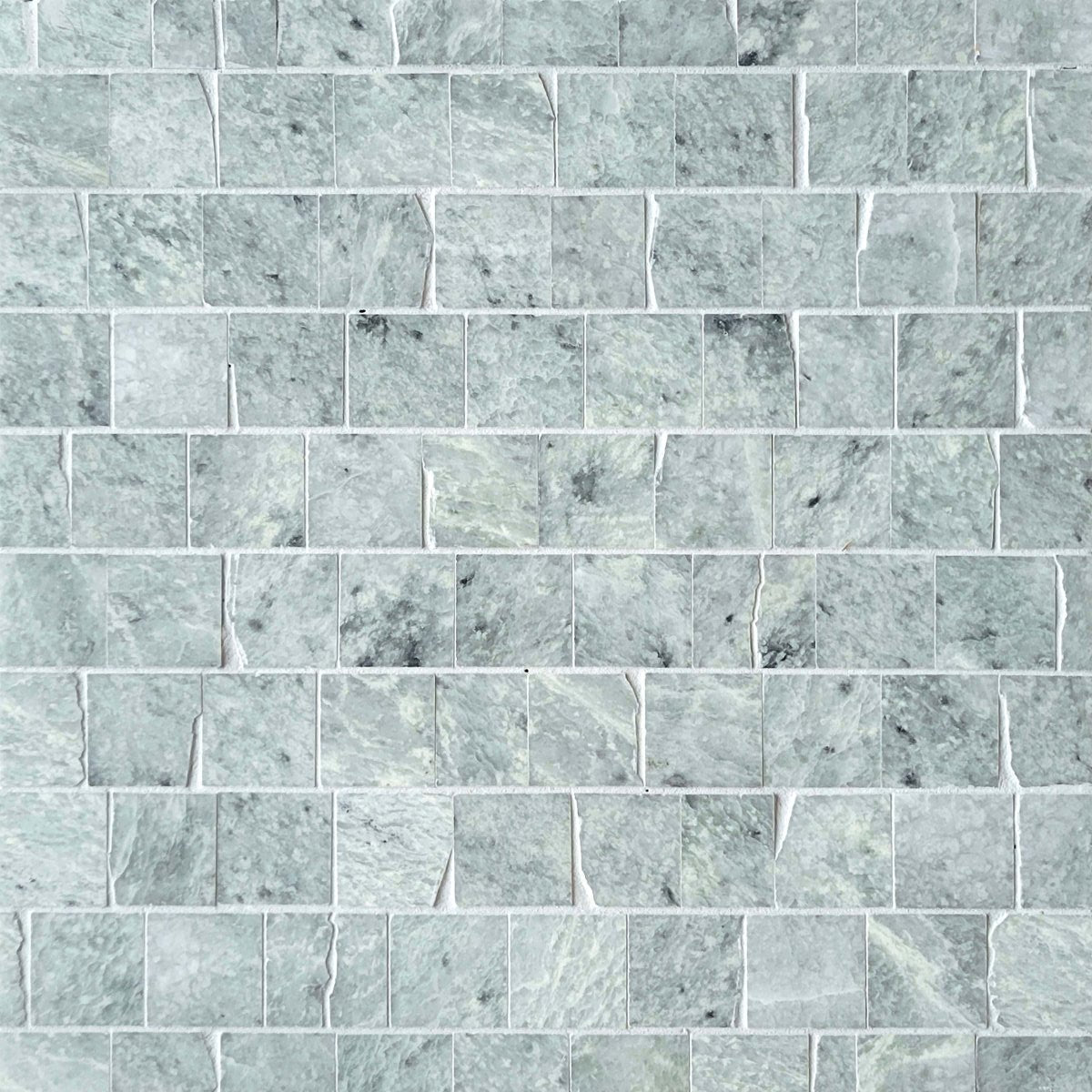 Moreover, the subtle sheen of the stone complements modern metal fixtures and classic woods alike. Choose the green mosaic tile for a feature wall, or, alternatively, apply it sparingly as an accent stripe. Either way, its slightly offset tile pattern adds texture without overwhelming nearby materials.