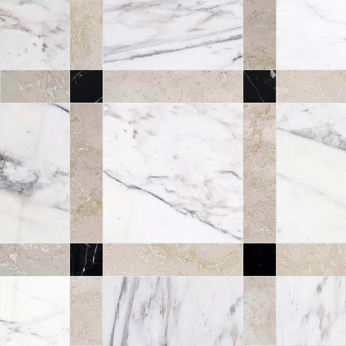 Materials: Calacatta, Botticino, Nero Marquina, All Polished. Available in Honed Finish for an Additional Fee.