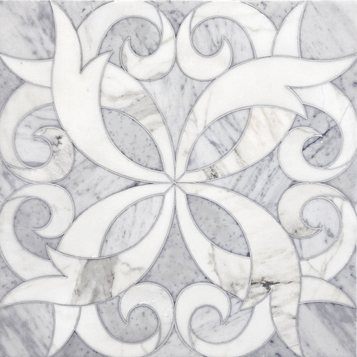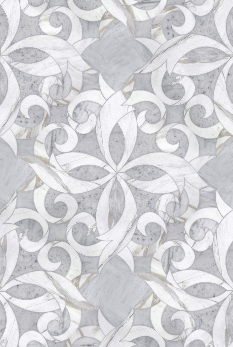 Adorn your space with a luxurious addition: Casablanc Titan Ornamental Stone Waterjet Mosaic. This beautiful mosaic features exquisite detail and timeless elegance, crafted with intricate waterjet technology to create a one-of-a-kind piece of art. Transform any room into a work of art with this elegant and exclusive mosaic.
