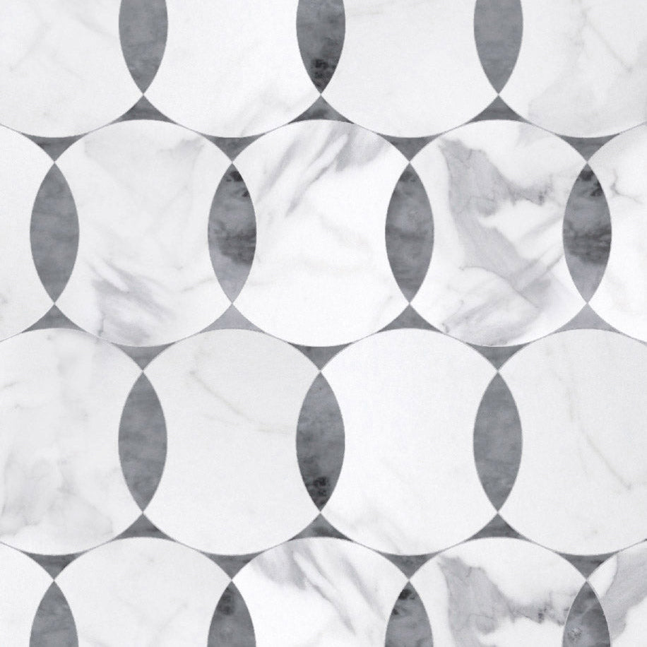 Experience the beauty and grandeur of the Curv Emmo Circles Stone Waterjet Mosaic. This stunning tile offers an elegant geometric pattern to enhance any space with its luxurious, timeless design. The unique waterjet feature ensures a precise and refined finish that emphasizes its exquisite craftsmanship, complimenting your interior with opulent flair and style.