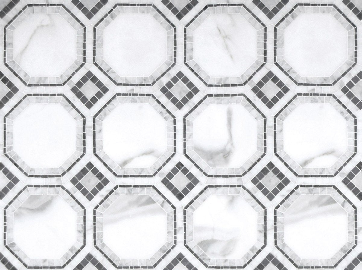 Discover the timeless elegance of our Curv Kate Grigio Octagon Stone Waterjet Mosaic. Featuring a stunning octagon shape, the waterjet cut stones will add a touch of sophistication and luxury to any space. The unique design is sure to make a grand statement and bring splendor to your decor.