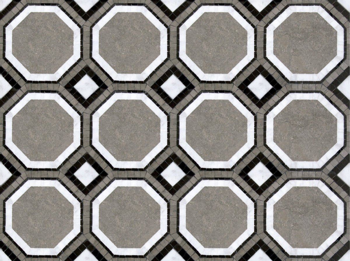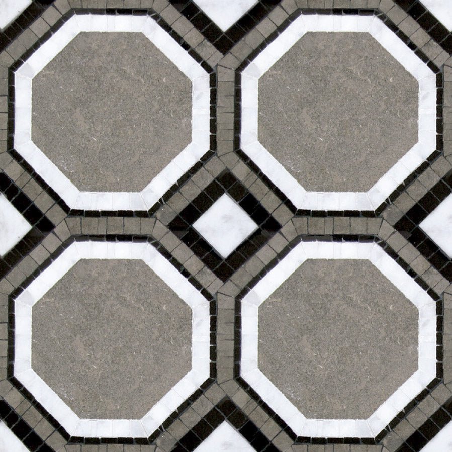 Add a touch of luxury to your home with the Curv Kate Smoke Octagon Stone Waterjet Mosaic. Crafted with sophistication and taste in mind, this exquisite mosaic tile forming a beautiful octagonal design will make any space come to life. The dark hues create an inviting atmosphere that will make you never want to leave home.