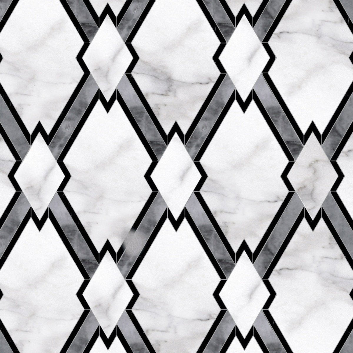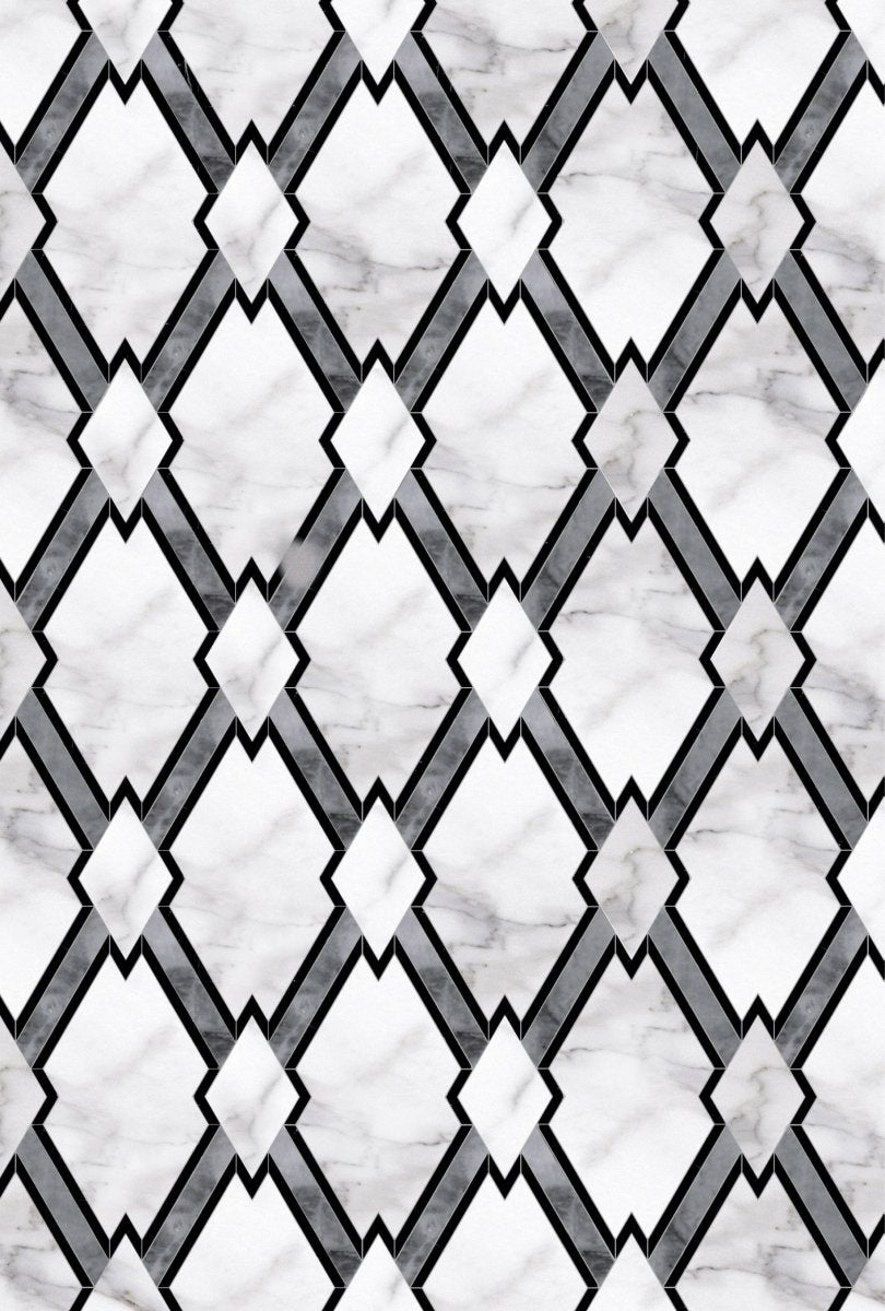 Discover the luxury of Curv Mirra Geometric Stone Waterjet Mosaic, an opulent amalgamation of geometric shapes that combine to create an exquisite piece of artwork. With its monochromatic colors, intricate detailing, and crisp lines, this waterjet mosaic is a statement of unparalleled elegance and sophistication that is sure to bring any space to life.