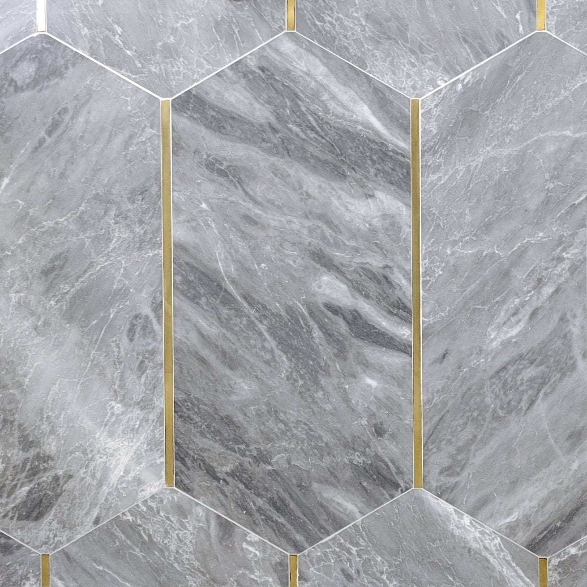 Elegantly crafted, the Decoline Enna Picket Stone & Metal Waterjet Tile is a luxurious way to add exclusivity to any well-designed space. Crafted with a unique fusion of stone and metal, this tile offers a unique texture and look that is sure to stand out and make a statement - the perfect way to accessorize any home.