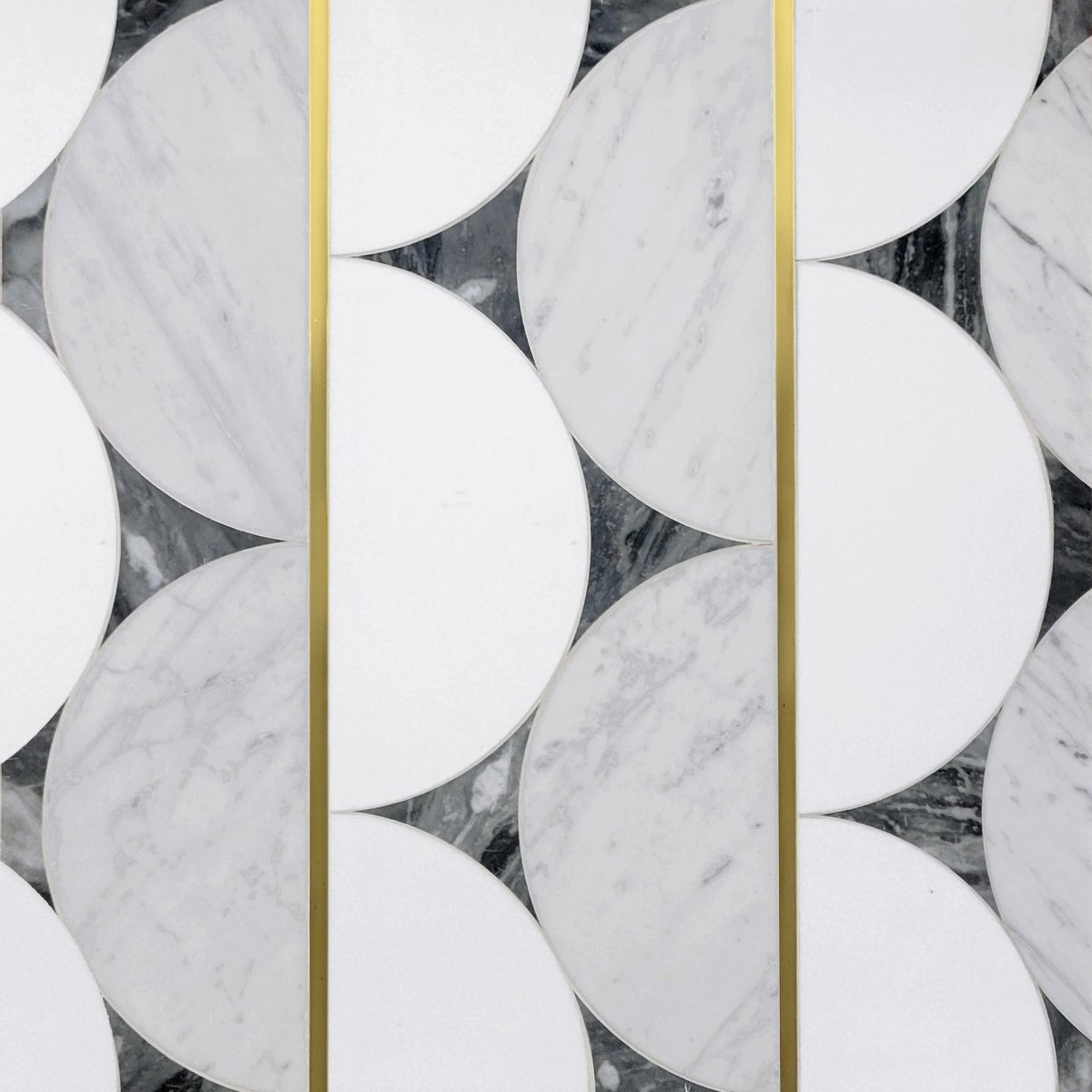 Materials: Carrara Polished, Thassos Polished, Bardiglio Honed, and Brushed Brass.