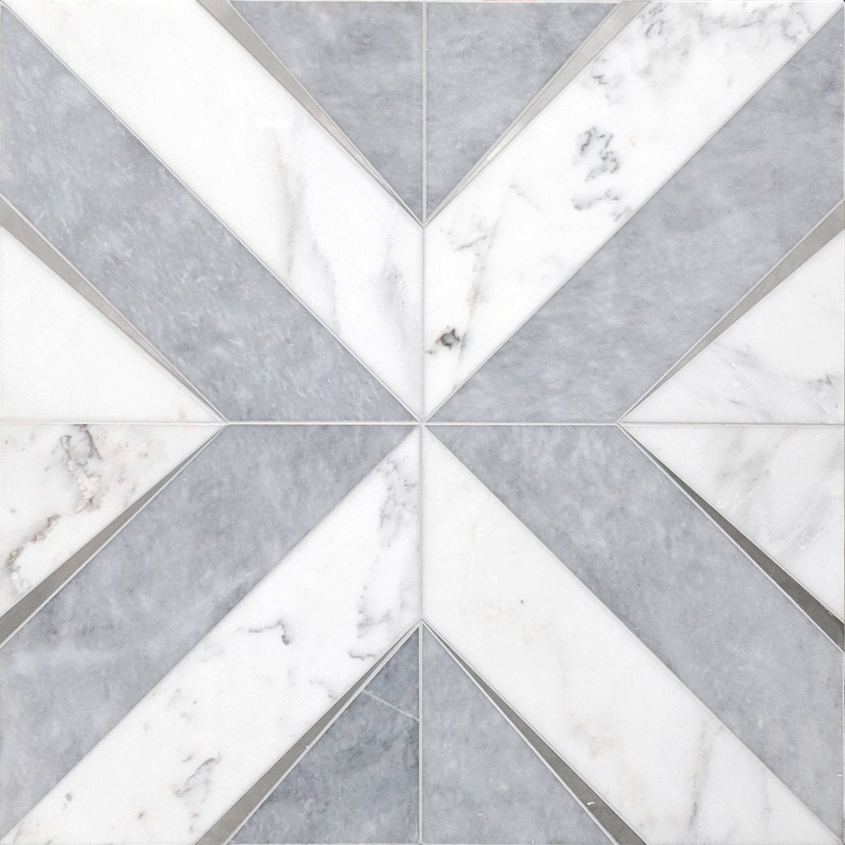 The Decoline Parque Geometric Stone & Metal Waterjet Mosaic is the perfect choice to enhance any interior living space with its modern, geometric design. The mosaic features a unique blend of stone and metal, adding visual interest with its clean lines and tasteful look. Installing this waterjet mosaic will bring sophistication and style to your home.