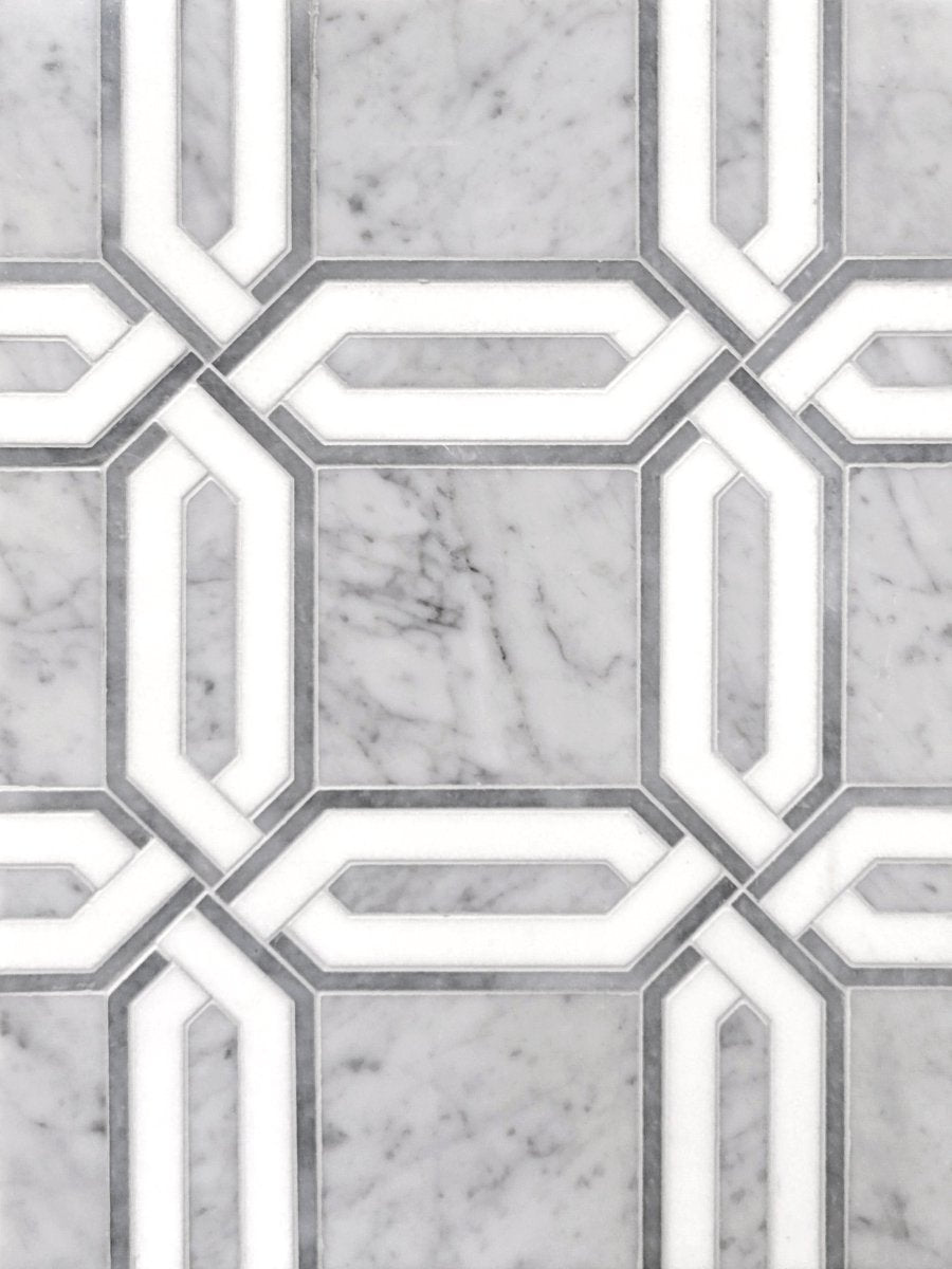 Bring a modern, timeless look to any indoor or outdoor space with the Effusion Janice Geometric Stone Waterjet Mosaic. Its intricate design and waterjet-cut stone pieces make a striking statement. Durable and easy to install, it will add a captivating touch to any room.