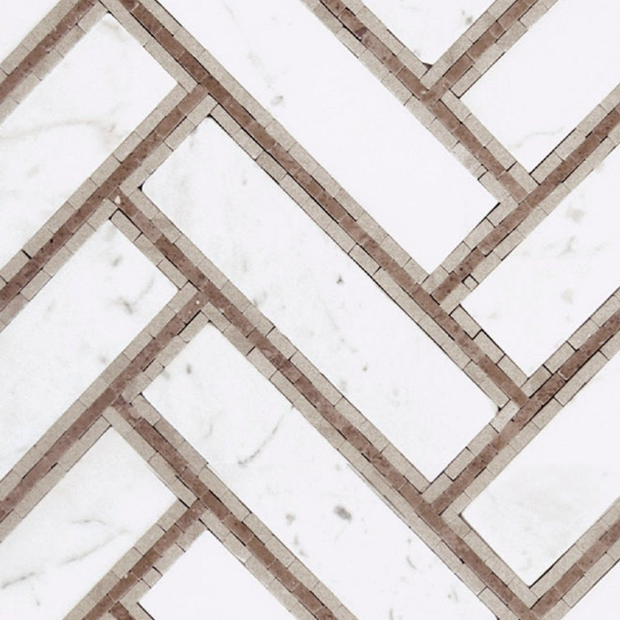 Breathe new life into your home with the classic appeal of the herringbone tile design. Right from the first glance, this mosaic exudes elegance, especially with its natural stone materials. Thanks to the timeless charm of brown marble, it radiates a refined ambiance. Moreover, the herringbone tile pattern effortlessly catches the eye. It adds visual intrigue to any room.