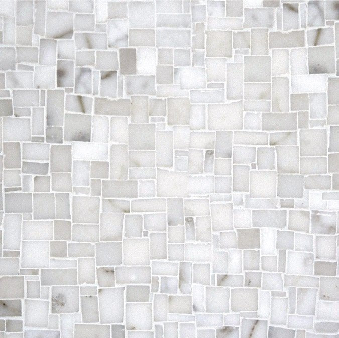 Fusione Alda hand-chopped stone mosaics deliver timeless elegance. Our design features exquisite hand cut tile artistry that you will appreciate immediately. From the start, these mosaics capture the beauty of grey and white tile styles, and they transform any room into a work of art.