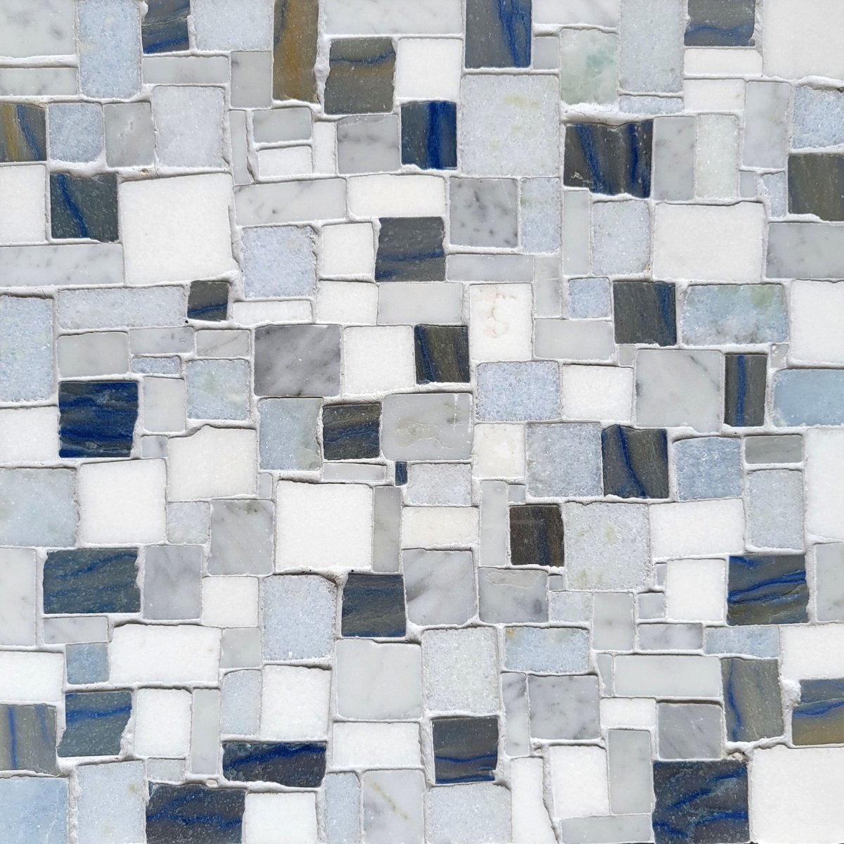 Materials: Macubas Blue, Blue Celest, Carrara, and Thassos Honed and Polished Mixed Together.
