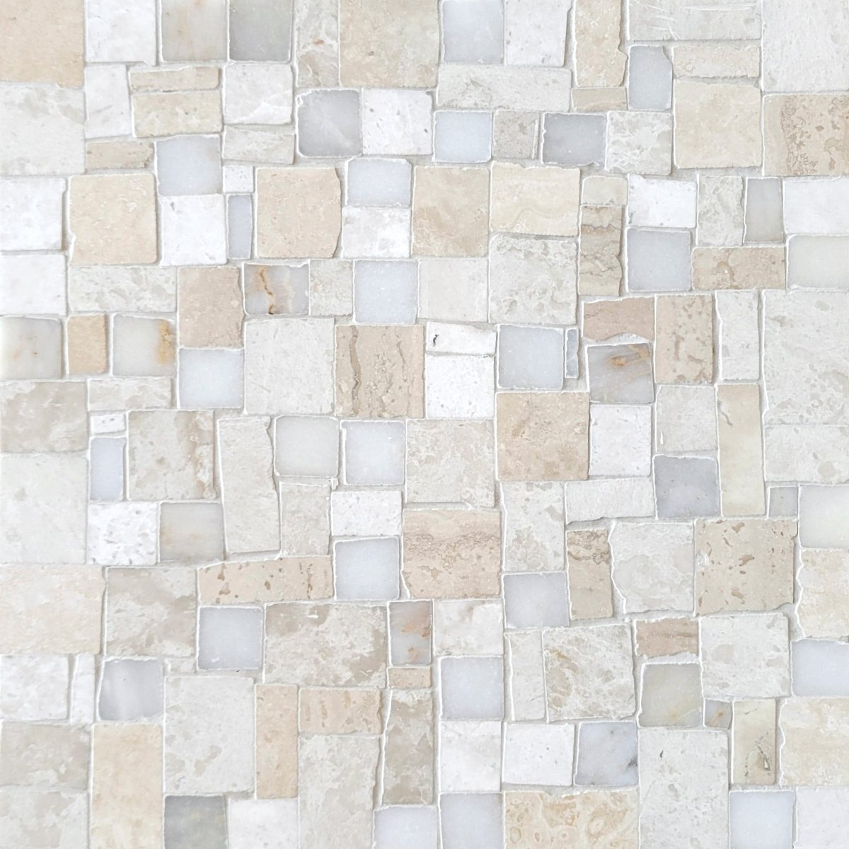 Materials: Durango, Botticino, Calacatta, and Vanilla Creme Polished and Honed Mixed Together.