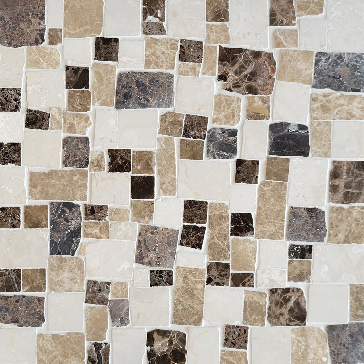 Materials: Dk. Emperador, Lt. Emperador, and Crema Marfil Polished and Honed Mixed Together.