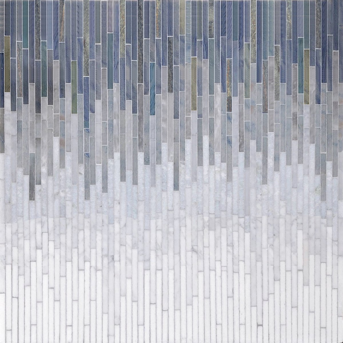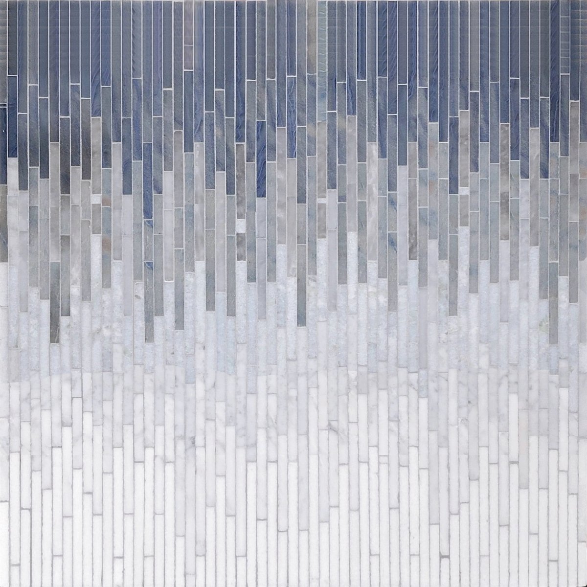 Beautify your space with the Ombre Rain Azul Stone and Porcelain Mosaic. This stunning accent piece is made using natural stones arranged in a unique blue ombre pattern that adds a touch of sophistication and flair to any interior decor. The combination of colors and textures creates a one-of-a-kind look that's sure to make a statement.