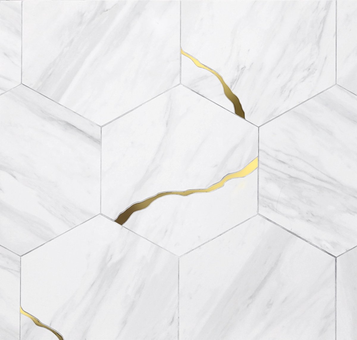 The Orel Hexagon Waterjet Stone and Brass Mosaic is an exquisite choice for your mosaic tile needs. Its intricate design and high-quality craftsmanship will bring elegance and sophistication to any room. Enjoy breathtaking visuals and durability in one product.