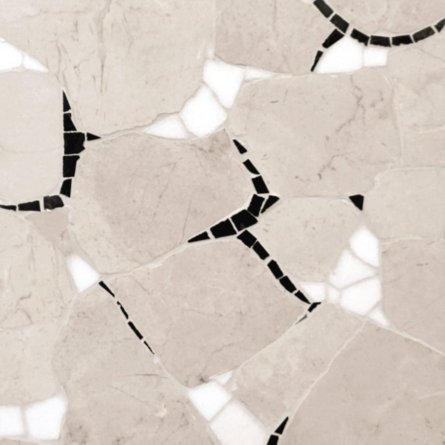 Materials: Crema Marfil, Thassos, and St. Laurent Polished and Honed Mixed.