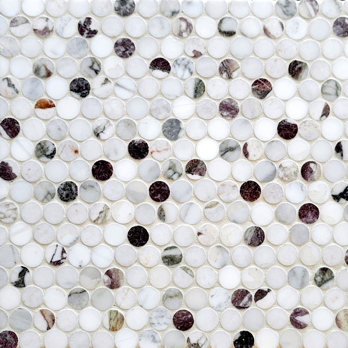 This beautifully crafted Penny Tile Breccia Capraia Rounds Stone Mosaic is the perfect addition to any luxurious space. Made from stunning natural stone, this mosaic is a timeless classic that will bring a fine balance of sophistication and opulence to any setting. Enjoy the unique texture and sophistication of this exquisite stone.