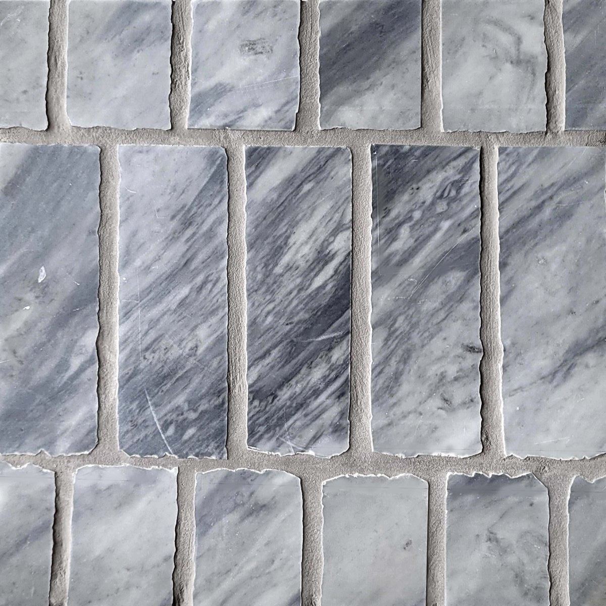 Elevate your space with the luxurious Scarpa Bardiglio 2''x6'' Offset Mosaic Tile. This sophisticated and exclusive tile features a beautiful Bardiglio marble design, adding a touch of elegance and refinement to any room. Create a stunning visual impact with this premium tile, perfect for showcasing your impeccable taste.