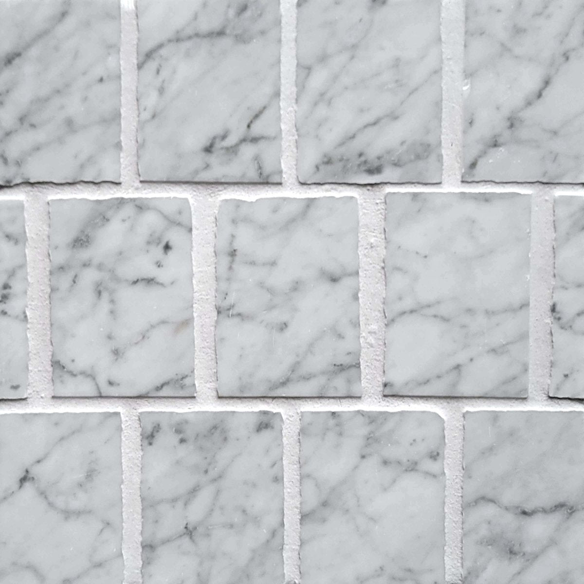 The Scarpa Carrara 3''x4'' Offset Mosaic Tile embodies timeless sophistication with its classic marble aesthetic. Featuring the renowned subtle gray veining characteristic of Carrara marble, this offset mosaic arrangement creates a captivating dimensional effect that transforms ordinary surfaces into works of art. Ideal for discerning designers seeking to impart understated luxury and refined elegance to bathrooms, kitchens, and accent walls.