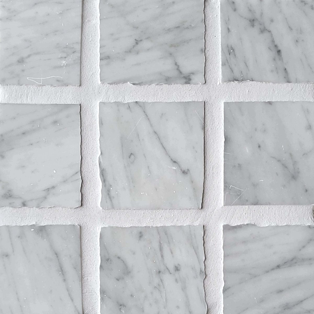 The Scarpa Carrara 4''x4'' Grid Mosaic Tile presents a harmonious balance of classical beauty and contemporary design. Each precisely cut square showcases the distinctive subtle gray veining of Carrara marble, arranged in a meticulous grid pattern that exudes architectural refinement. This timeless mosaic brings an air of understated luxury to any space, creating surfaces of exceptional elegance that will remain perpetually in vogue.