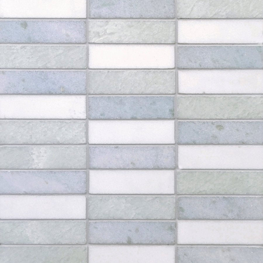 Introducing the Suji Skylark 1''x4'' Stacked Blend Stone Mosaic, a sophisticated, eye-catching luxury mosaic crafted from a unique blend of pastel color natural stones. The geometric pattern of the mosaic harmoniously incorporations earthy tones, providing a timeless and tasteful look that can add a touch of elegance to any room. Its intricate blend of shapes and textures challenges the eye, providing a timeless centerpiece that's sure to impress.