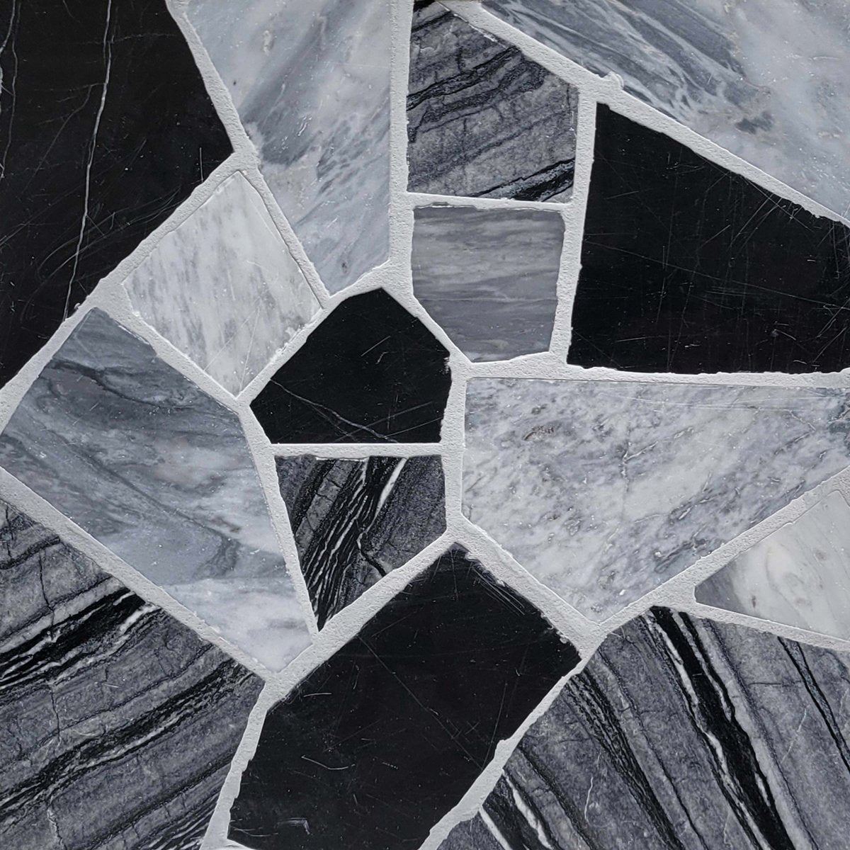 Capture the dramatic essence of nature with our Terrazzo Storm Blend Stone Mosaic. This distinguished composition showcases a sophisticated palette of deep grays and charcoals interspersed with carefully selected stone fragments. The dynamic interplay of tones evokes the powerful beauty of gathering clouds, creating a statement surface that commands attention while maintaining refined elegance. An exceptional choice for contemporary spaces seeking architectural gravitas and artistic distinction.
