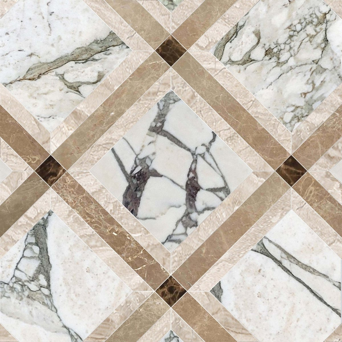 Elevate your space with the Umbria Clift Geometric Marble Waterjet Mosaic Tile, featuring a refined blend of earth tones and precise geometric patterns. Crafted through expert waterjet cutting, each marble piece fits seamlessly to create a sophisticated mosaic that adds timeless elegance to any room. Ideal for accent walls, backsplashes, or flooring, this tile combines natural beauty with artisanal craftsmanship, transforming your interiors into a statement of subtle luxury and enduring style.