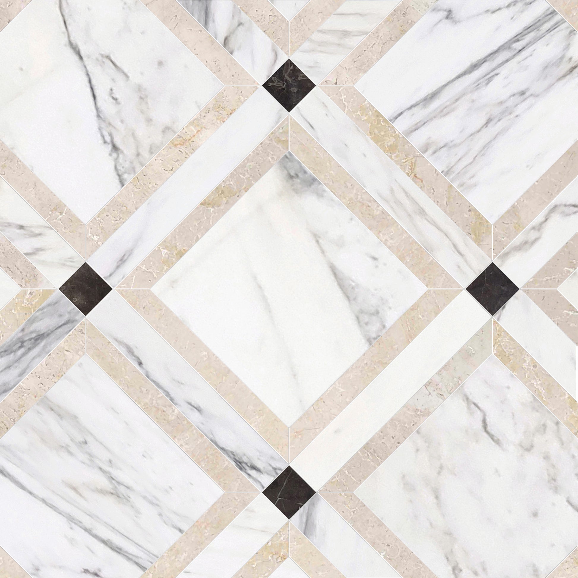 The Umbria Light Geometric Marble Waterjet Mosaic Tile offers a refined blend of soft hues and precise geometric patterns, expertly crafted through advanced waterjet technology. This tile’s elegant marble finish adds a subtle yet sophisticated touch to any interior, making it ideal for enhancing walls, backsplashes, or floors with timeless beauty and modern design.
