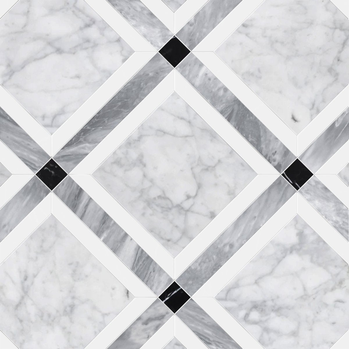 The Umbria Moon Geometric Marble Waterjet Mosaic Tile features delicately crafted geometric patterns etched into luminous marble using precise waterjet technology. Its subtle tones and refined design bring a serene yet sophisticated ambiance to any space. Perfect for enhancing walls, backsplashes, or flooring, this tile combines natural beauty with modern artistry to create an elegant statement in your interior.