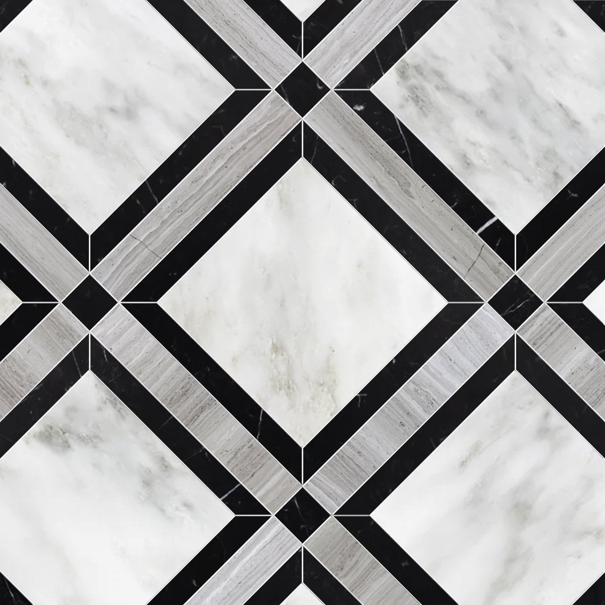 The Umbria Springs Geometric Marble Waterjet Mosaic Tile combines meticulous craftsmanship with elegant design. Featuring precise geometric patterns expertly cut from premium marble using waterjet technology, this tile offers a refined aesthetic with subtle natural veining. Its sophisticated style enhances any interior, making it an ideal choice for floors, walls, or backsplashes seeking timeless beauty and enduring quality.