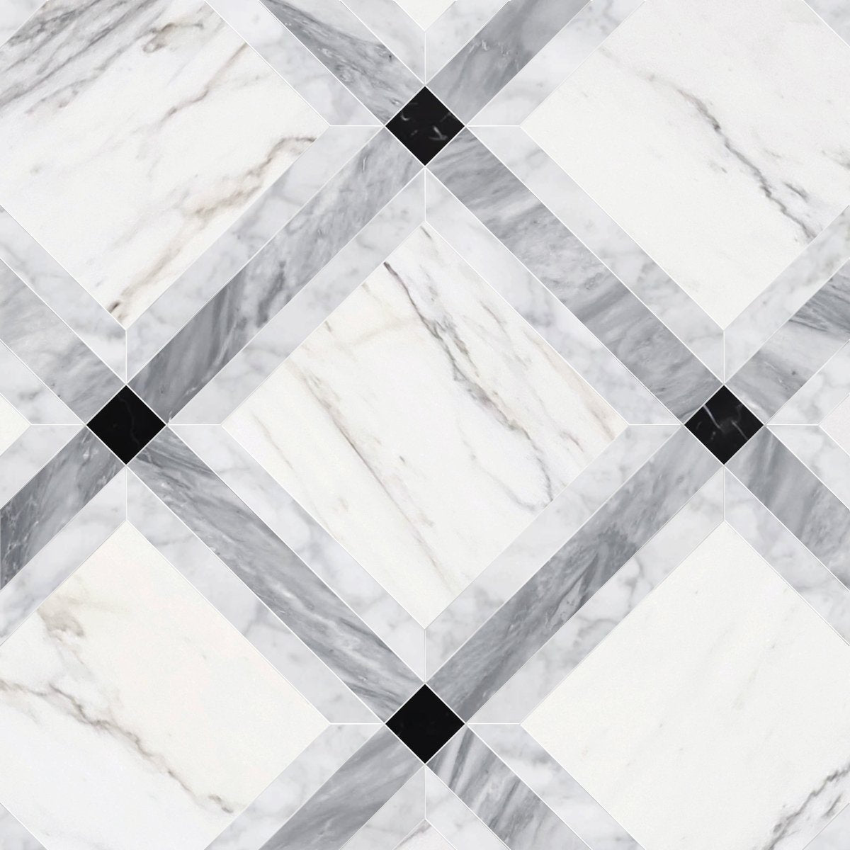 The Umbria Tundra Geometric Marble Waterjet Mosaic Tile showcases exquisite craftsmanship with its precise geometric patterns cut from high-quality marble using advanced waterjet technology. Its cool, natural tones and refined design add a sophisticated and timeless elegance to any space. Ideal for floors, walls, or backsplashes, this durable mosaic tile transforms interiors with a subtle yet striking statement of luxury and style.