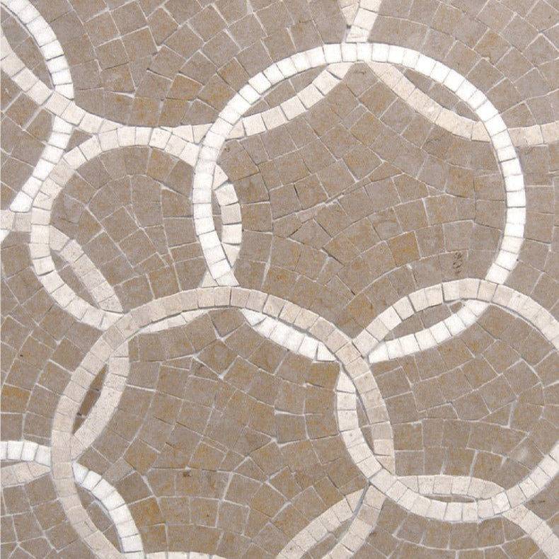 Bring texture and a touch of luxury to your living space with the Univo Avila Sand Circle Stone Mosaic. This circle tile set comes in a subtle shade of sand. It features an intricate circle design that creates a unique look of sophistication and refinement.