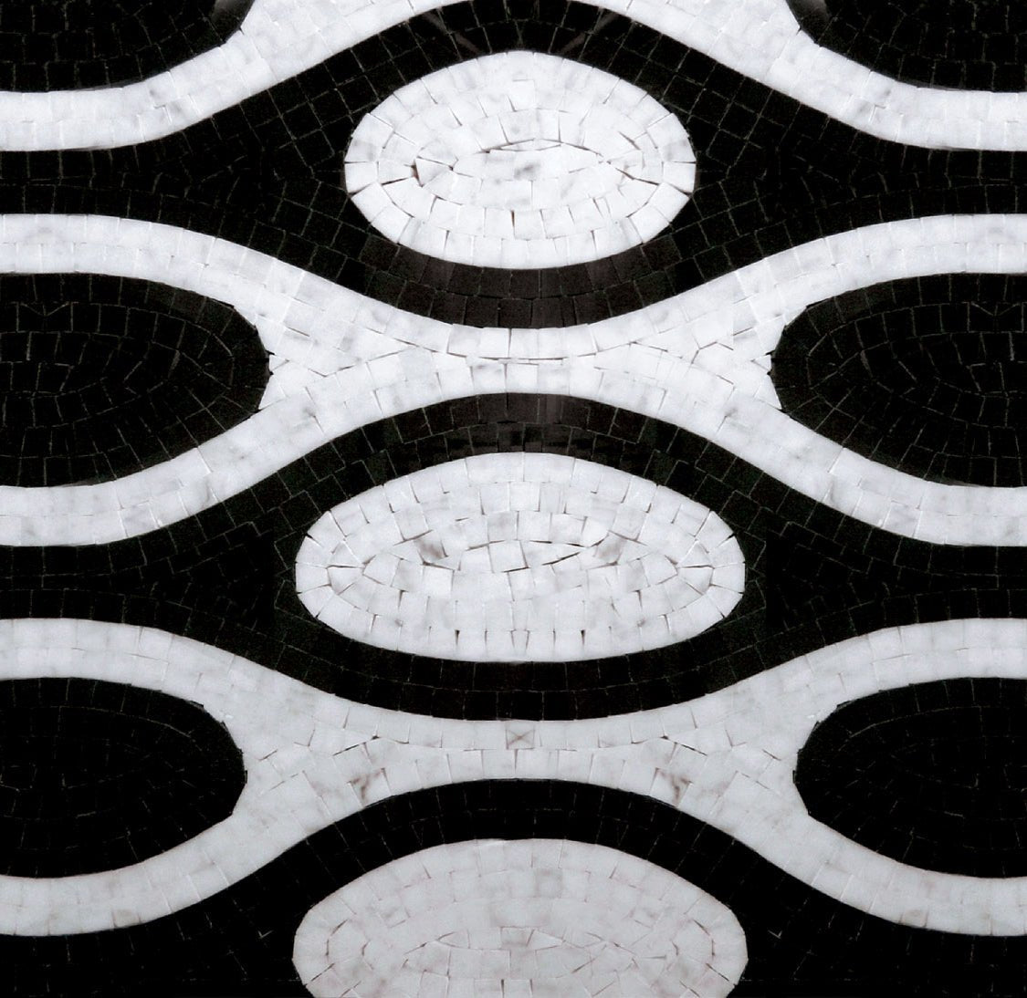 The mosaic is versatile and complements various decors. For example, its elegant pattern perfectly suits black and white tile themes and is an excellent option for black and white bathroom designs. Moreover, its design features a distinct circle tile element that forms a bold circle design. These aspects ensure that the mosaic maintains its impact in every corner of your home. Additionally, the design’s balanced composition uses both abstract tile and abstract design concepts, distributing visual appeal evenly across the piece.