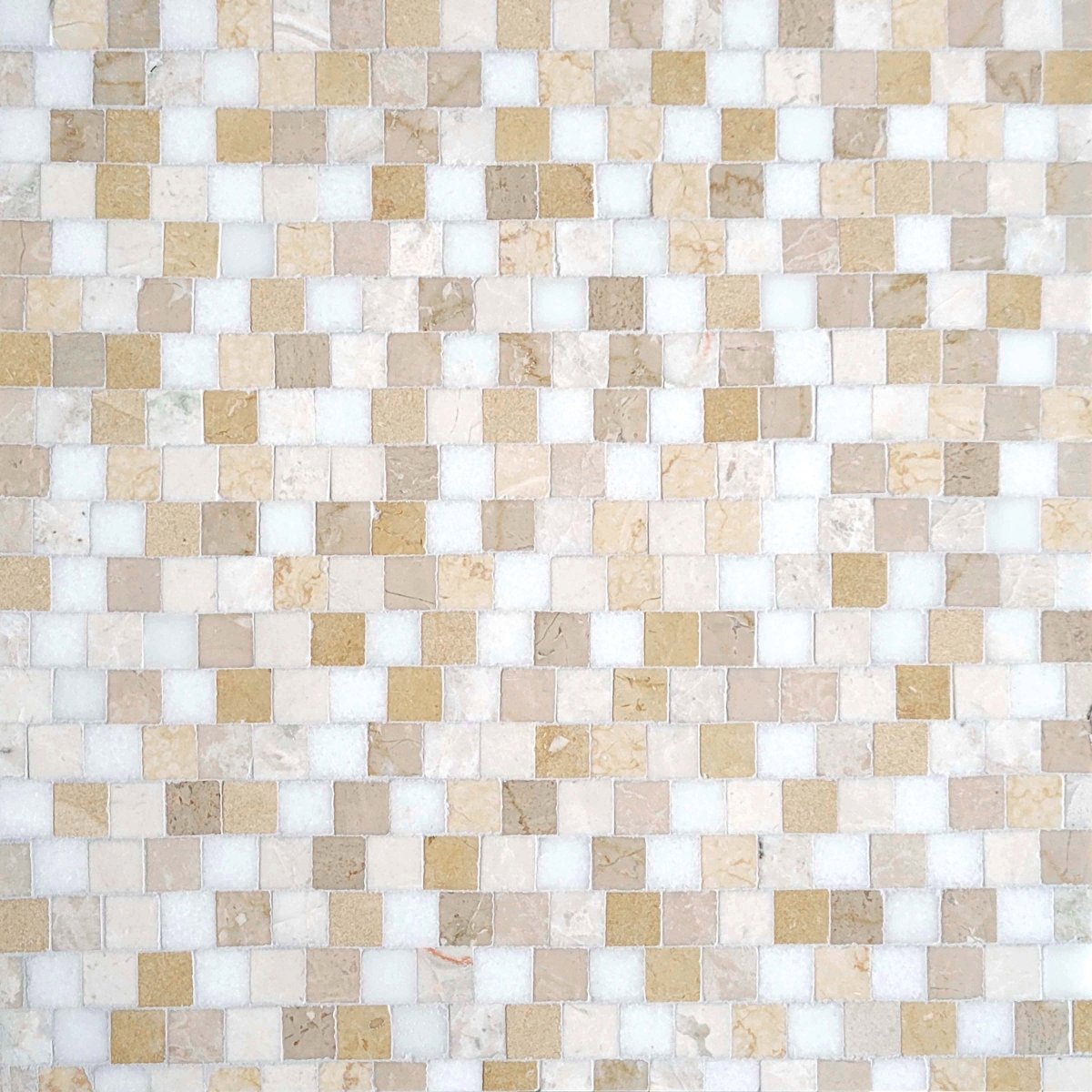 The Urbani Desert 5/8" Blend Stone Mosaic offers an exquisite tapestry of warm, desert-inspired hues meticulously arranged in a refined pattern. This premium natural stone mosaic combines subtle variations of sand, amber, and earth tones to create depth and dimension in any space. Ideal for creating statement walls, elegant backsplashes, or distinctive accent features that convey understated luxury and timeless sophistication.